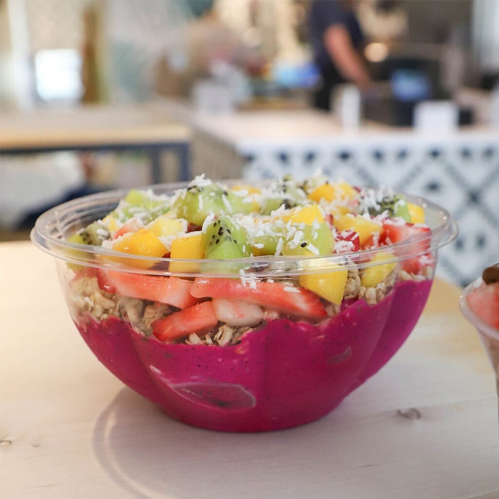 Salad Bowl: Made from PLA, a compostable plastic derived from plant sugars, and perfect for salads, açai bowls, and other cold entrées. Freezer safe and crystal-clear to show off your signature dishes.
